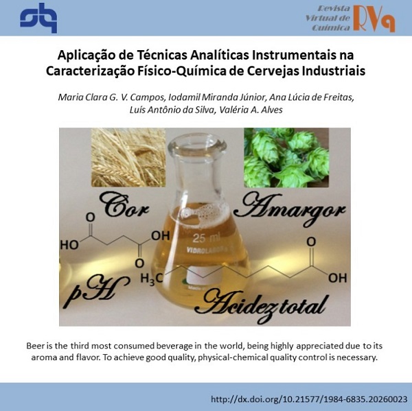 O resultado do projeto de pesquisa “Aplicação de Técnicas Analíticas Instrumentais na Caracterização Físico-Química de Cervejas Industriais” foi publicado na Revista Virtual de Química, publicação bimestral, gratuita, sem fins lucrativos e totalmente eletrônica da Sociedade Brasileira de Química. O Estudo foi coordenado pelos professores Valéria Almeida Alves e Luís Antônio da Silva, do Laboratório de Eletroquímica e Eletroanalítica do Departamento de Química do ICENE (LEE-DQ/ICENE) da UFTM. Participaram também os discentes do curso de Licenciatura em Química (Sede), Ana Lúcia de Freitas, Iodamil Miranda Júnior e Maria Clara Gomes Viégas Campos, egressa do curso, cujo TCC defendido em agosto de 2023 sob a orientação da professora Valéria Almeida Alves foi o precursor das pesquisas com cervejas no LEE.