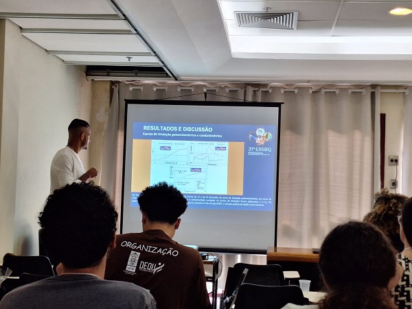 Os resultados do projeto de pesquisa também foram apresentados pelo discente Iodamil Miranda Júnior na sessão oral e na sessão de pôster de Alimentos e Bebidas, durante o 37º Encontro Regional da Sociedade Brasileira de Química de Minas Gerais (ERSBQ-MG), em outubro de 2025, realizado no Centro de Convenções da UFOP, Ouro Preto.