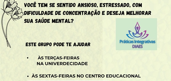 A Divisão de Atenção Estudantil em Saúde (DIAES), da PROACE, convida toda a comunidade acadêmica da UFTM para participar do Grupo de Reiki e Meditação, parte do Projeto "Saúde...