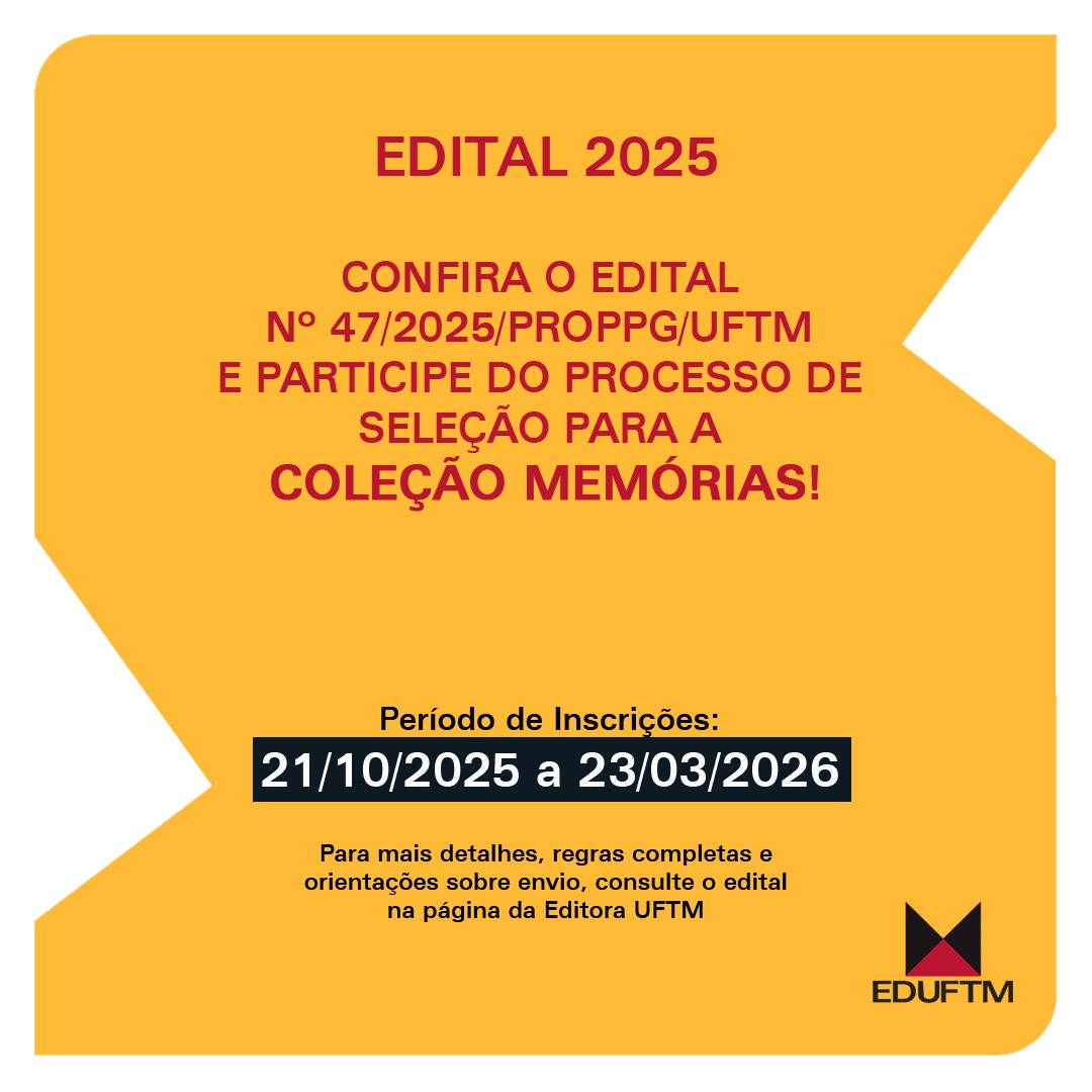 A Editora UFTM receberá trabalhos para a Coleção Memórias. O prazo para envio é de 21 de outubro a 23 de março de 2026. Autoras e autores podem participar enviando trabalhos...