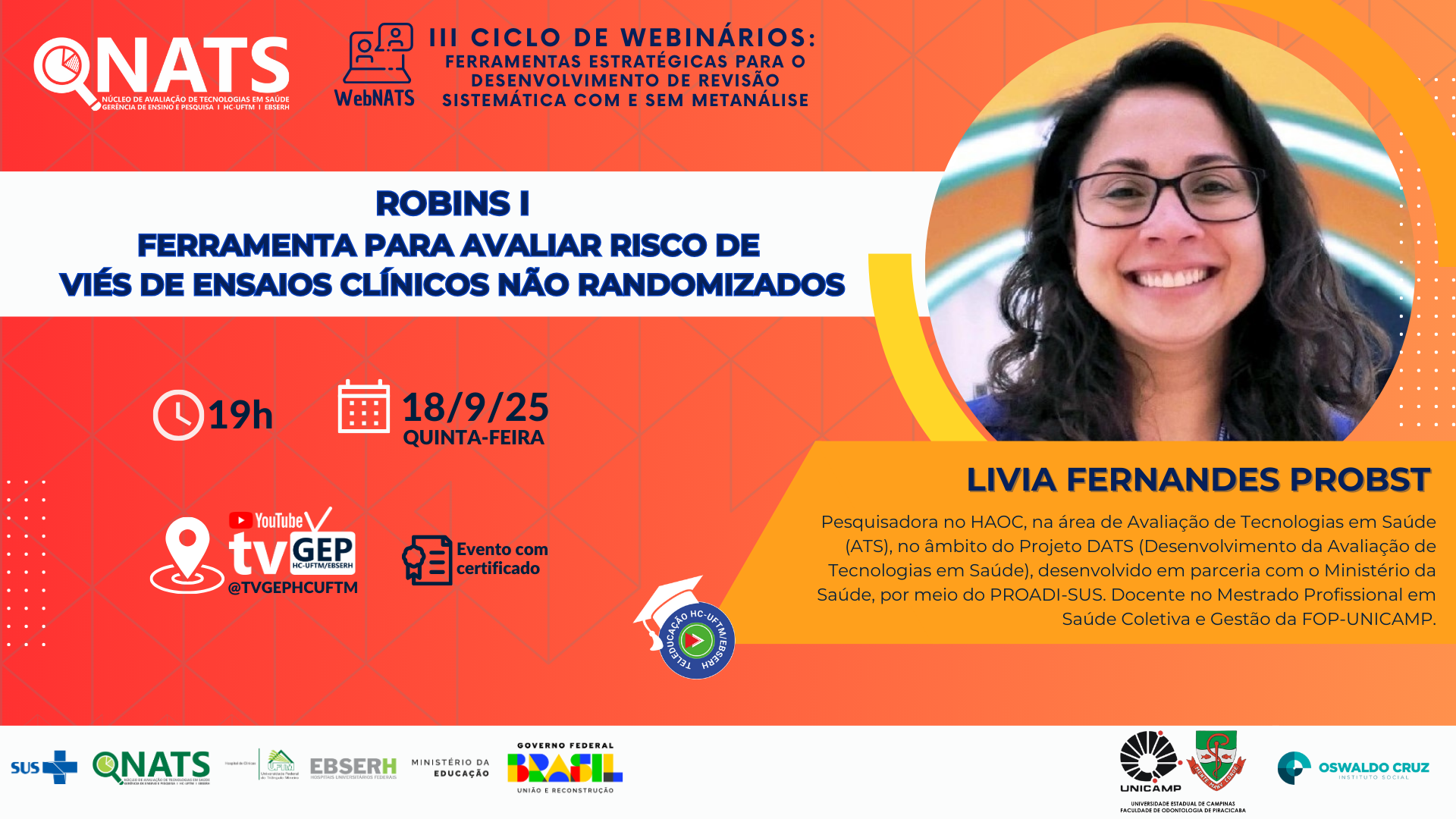 No dia 18 de setembro, às 19h, acontecerá o III Ciclo de Webinários do NATS HC-UFTM. O evento, produzido pelo Núcleo de Avaliação de Tecnologias do HC-UFTM, terá...