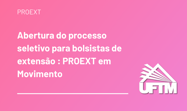 A Pró-Reitoria de Extensão, Cultura e Esporte (PROEXT) da UFTM anunciou a abertura do processo seletivo para bolsistas de extensão que atuarão no programa "PROEXT em Movimento" durante...