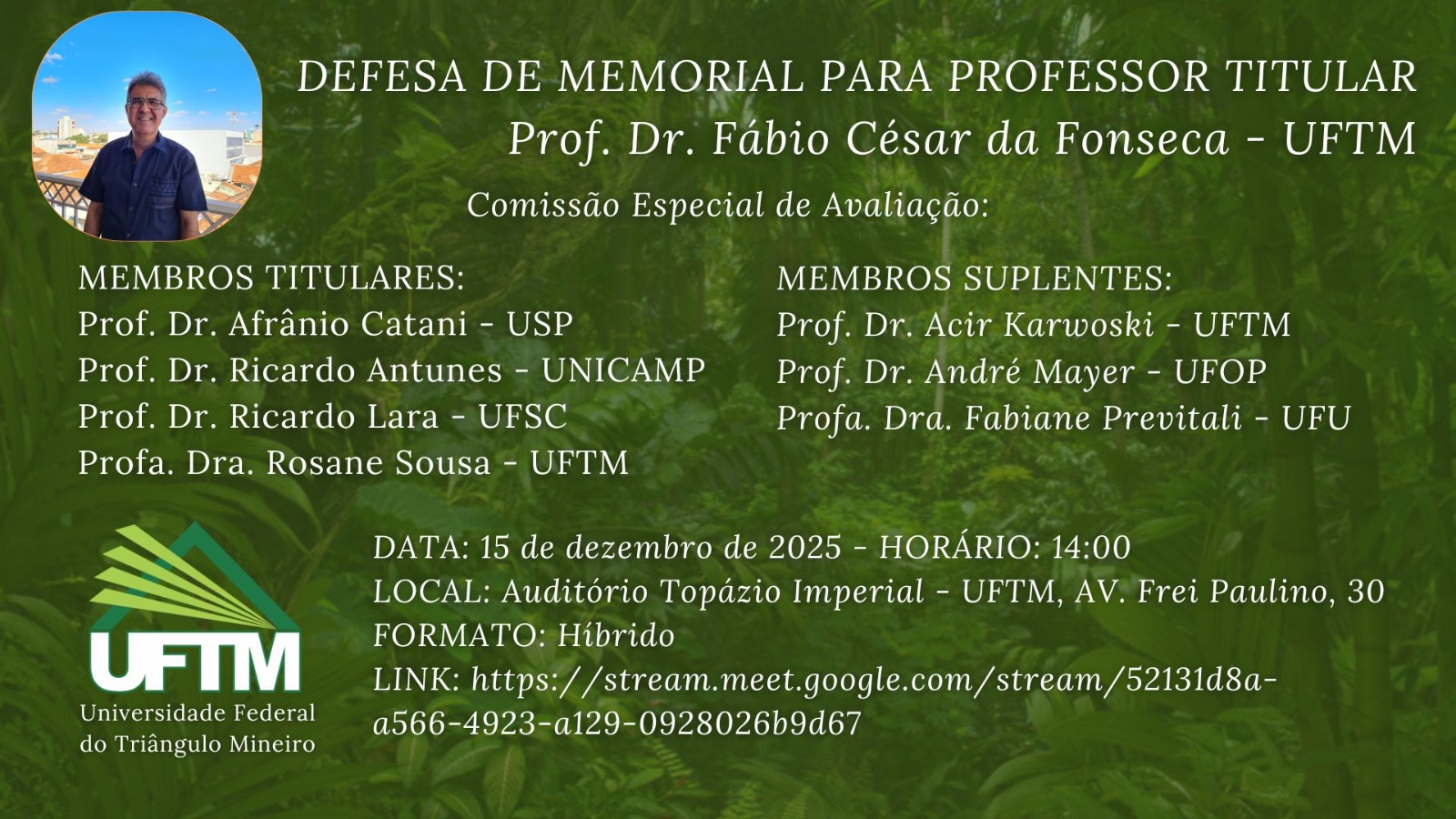 Defesa de Memorial do Professor Fábio César da Fonseca dia 15 de dezembro