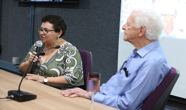 Participantes do projeto, familiares e amigos para o 14° episódio com o Dr. Arlindo Pardini Idealizado pela vice-reitora, Dra. Meire Soares, o programa busca preservar a memória...