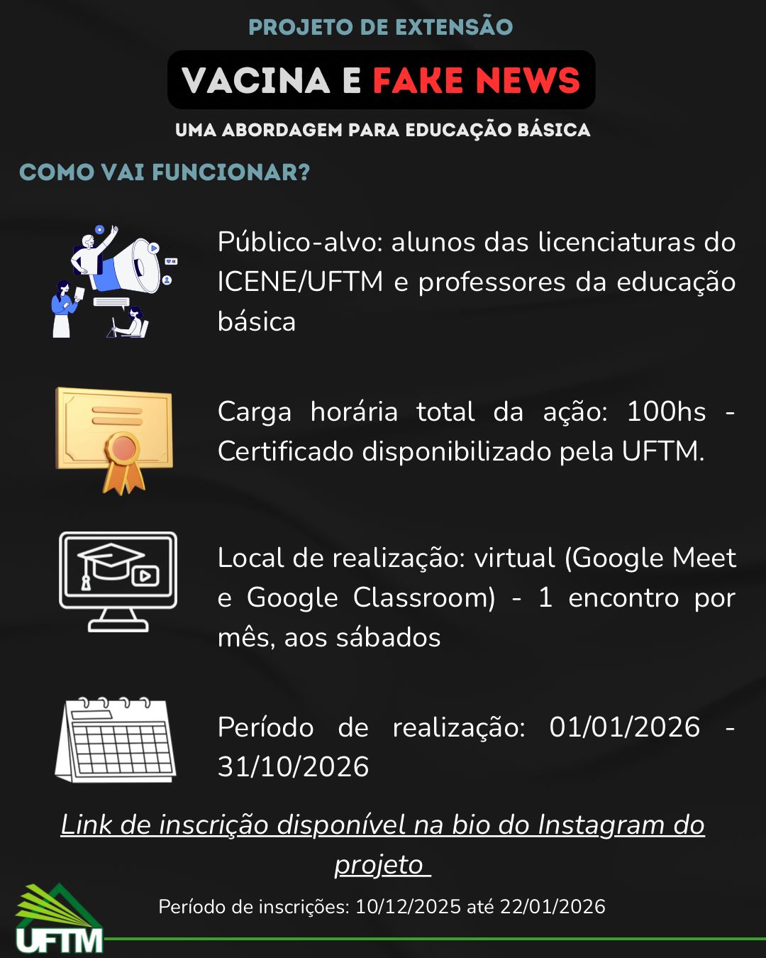 Instagram do projeto: @vacinasefakenewsuftm