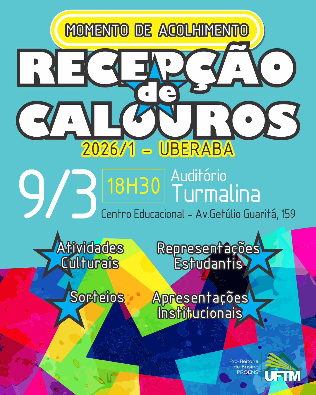 A Universidade Federal do Triângulo Mineiro (UFTM) anuncia que a tradicional Recepção dos Calouros está marcada para o dia 9 de março de 2026, com início às 18h30, no Auditório Turmalina.